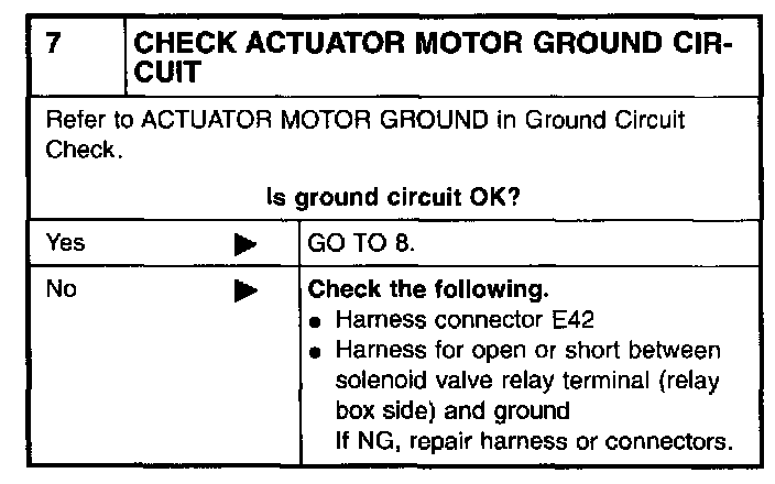 7 CHECK ACTUATOR MOTOR GROUND CIRCUIT: