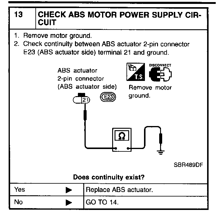 13 CHECK ABS MOTOR POWER SUPPLY CIRCUIT: