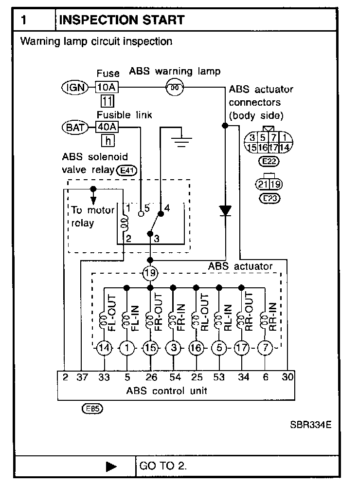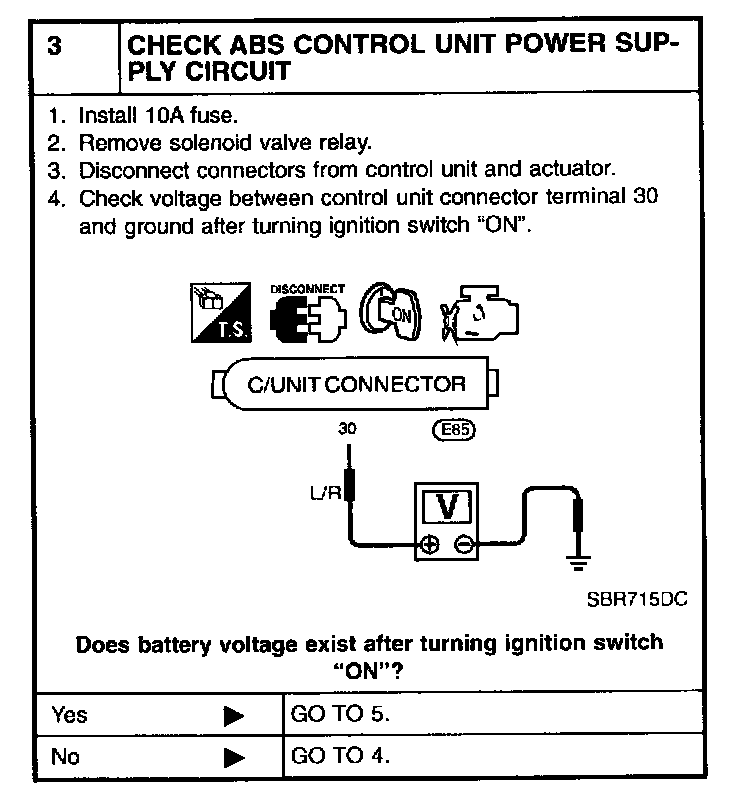 3 CHECK ABS CONTROL UNIT POWER SUPPLY CIRCUIT: