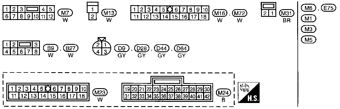 M1, M3, M5, E72 Fuse Block-Junction Box (J/B) Terminal Arrangement