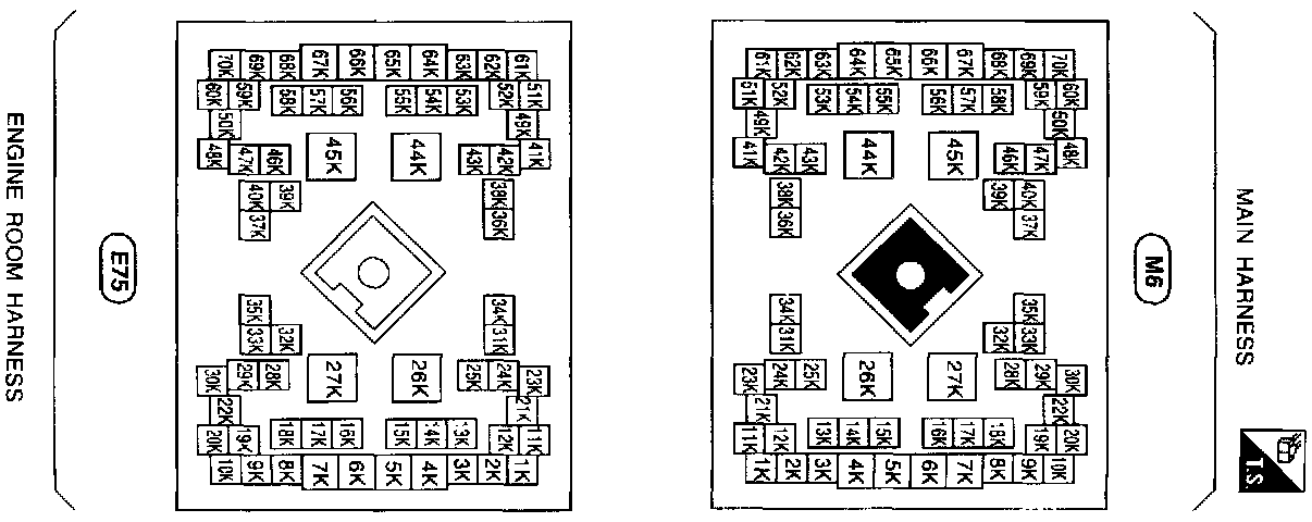 M1, M2, M3, M4, E72 Fuse Block-Junction Box (J/B) Terminal Arrangement