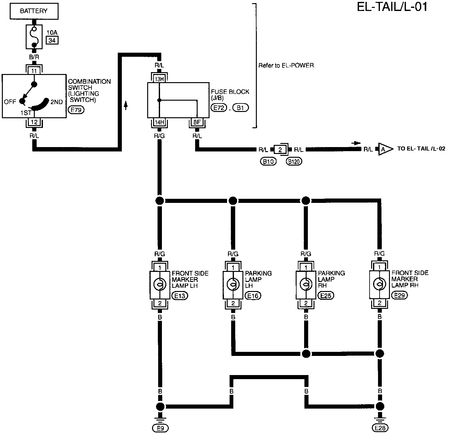 B1, E72 Fuse Block-Junction Box (J/B) Terminal Arrangement