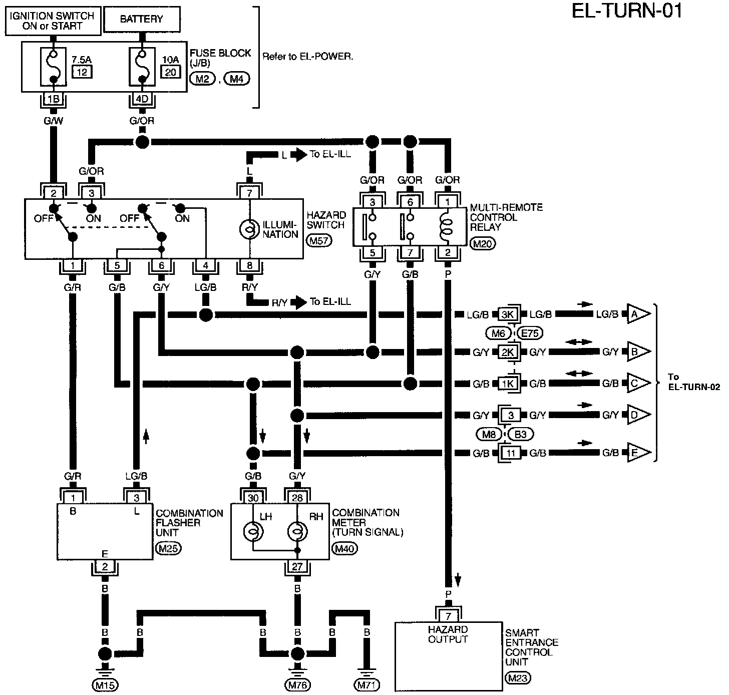 M2, M4 Fuse Block-Junction Box (J/B) Terminal Arrangement