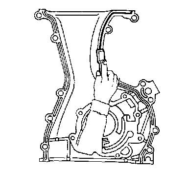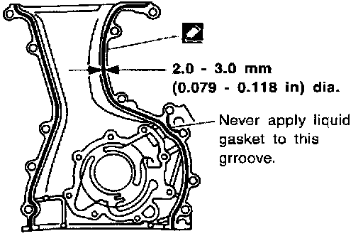 1. Apply a continuous bead of liquid gasket to mating surface of front cover assembly.