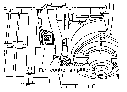 The fan control amplifier is located on the cooling unit. The fan control amp. receives a gate voltage from the auto amp. to steplessly maintain the blower fan motor voltage in the 5 to 12 volt range (approx.).