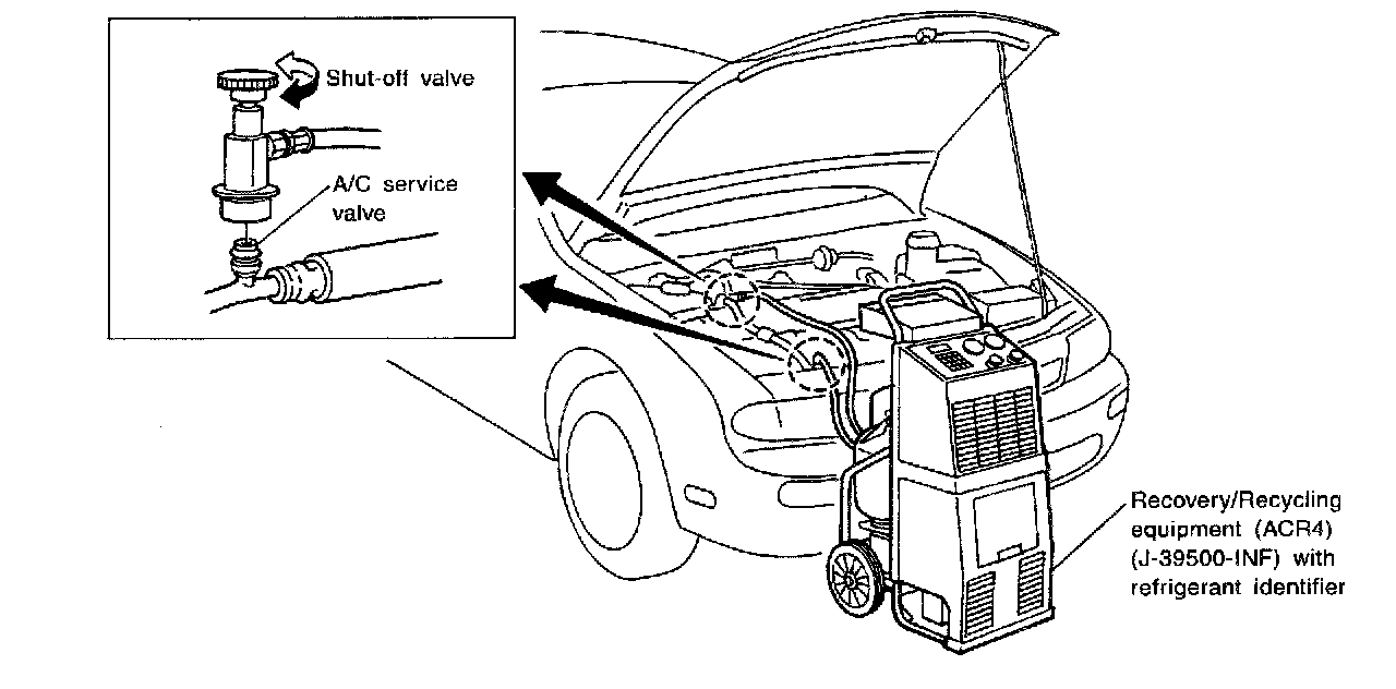 SETTING OF SERVICE TOOLS AND EQUIPMENTDISCHARGING REFRIGERANT