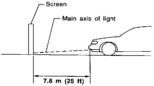 1. Set the distance between the screen and the center of the fog lamp lens as shown at left.