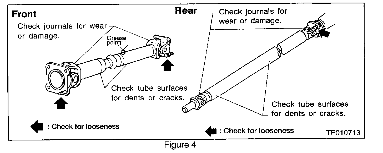 2. Check the propeller shaft(s) for damage, looseness, or grease leakage (see Figure 4). NOTE: The front propeller shaft should be re-greased after being immersed in water.