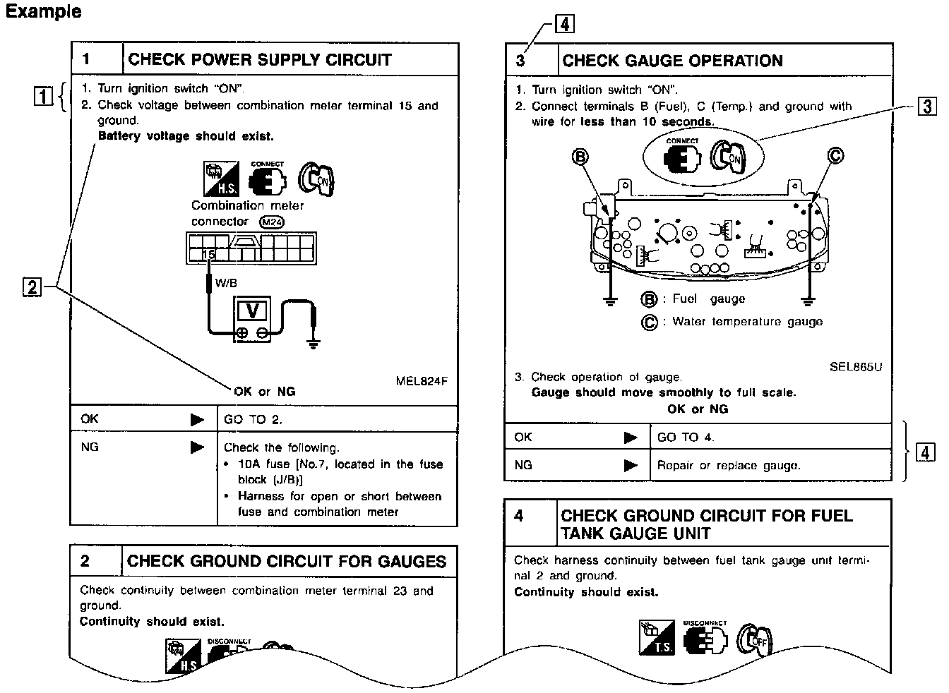 4. Refer to the Circuit Diagram for quick pinpoint check. If you need to check circuit continuity between harness connectors in more detail, such as when a sub-harness is used, refer to wiring diagram in each individual section and harness layout for identification of harness connector.