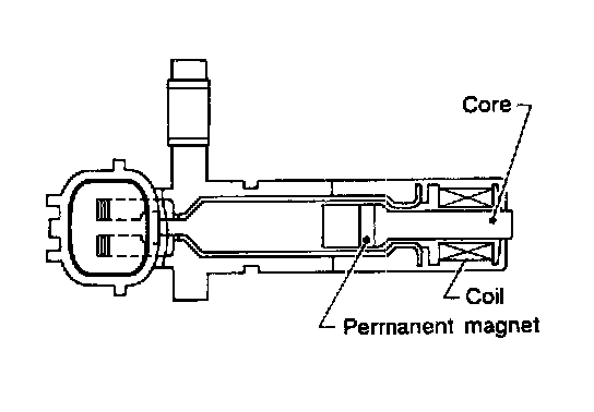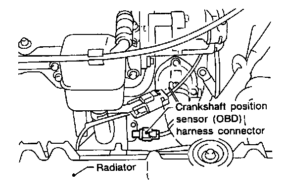 The crankshaft position sensor (OBD) is located on the transmission housing facing the gear teeth (cogs) of the flywheel or drive plate. It detects the fluctuation of the engine revolution. The sensor consists of a permanent magnet, core and coil. When the engine is running, the high and low parts of the teeth cause the gap with the sensor to change.