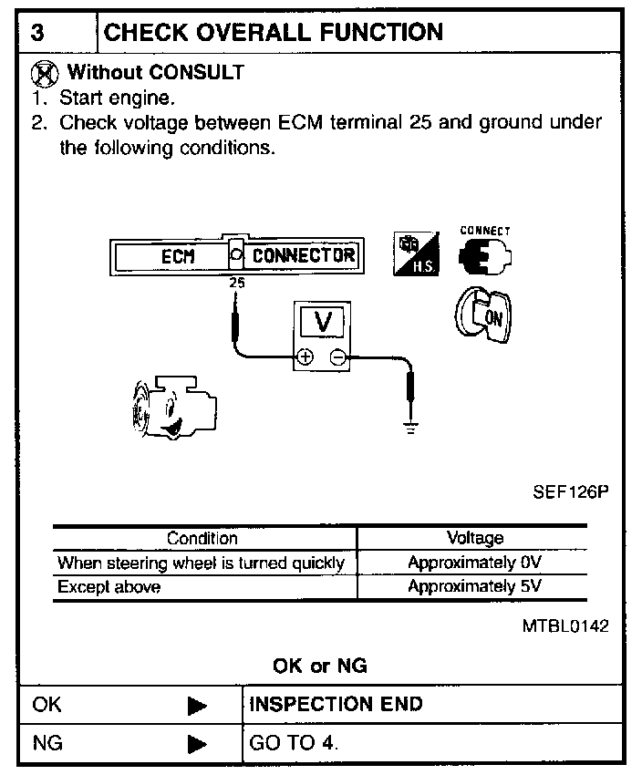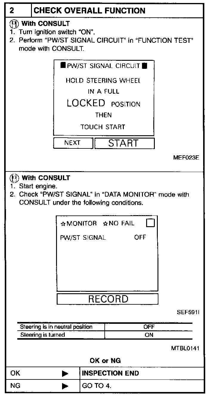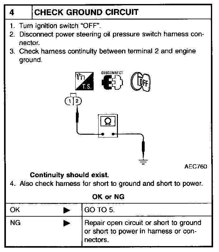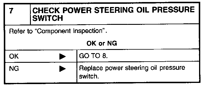 7 CHECK POWER STEERING OIL PRESSURE SWITCH: