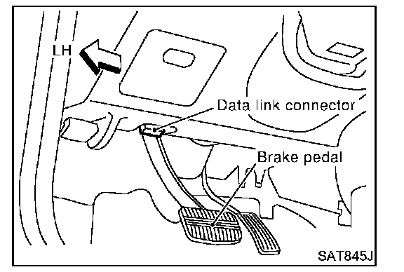 2. Connect "GST" to data link connector for GST. (Data link connector for GST is located under LH dash panel near the fuse box cover.)