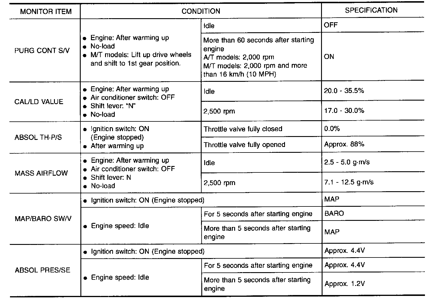 - Specification data are output/input values which are detected or supplied by the ECM at the connector.