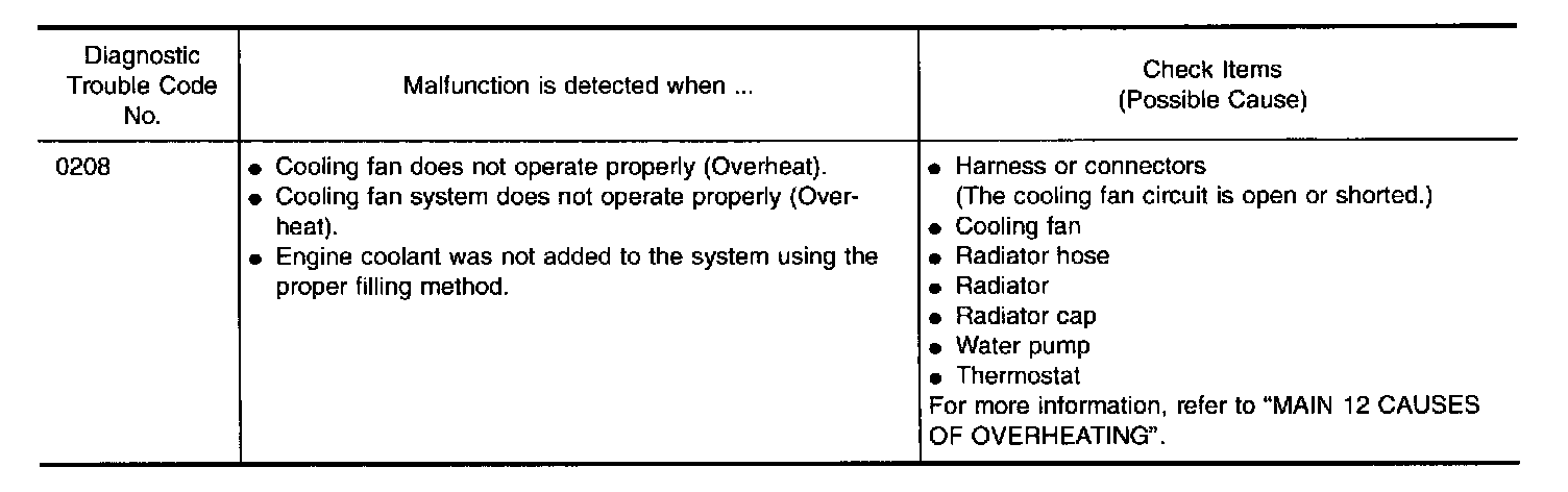 CAUTION: When a malfunction is indicated, be sure to replace the coolant following the procedure in the ("Changing Engine Coolant", "ENGINE MAINTENANCE"). Also, replace the engine oil.