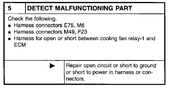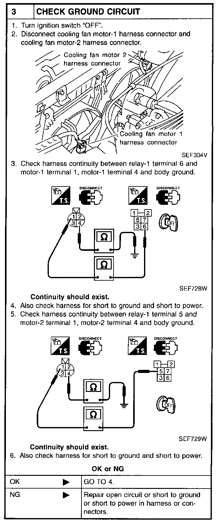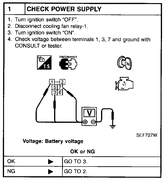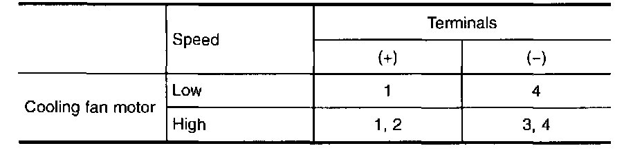 2. Supply cooling fan motor terminals with battery voltage and check operation.