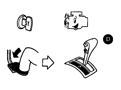 2. Start engine, apply foot brake, place selector lever in "D" position and wait a few minutes.