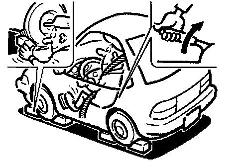 1. Check A/T fluid and engine oil levels. If necessary, add fluid or oil.