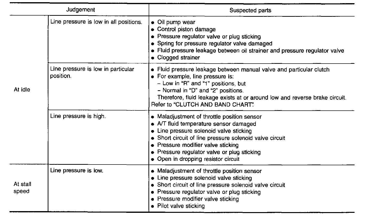 ^ When measuring line pressure at stall speed, follow the stall test procedure.