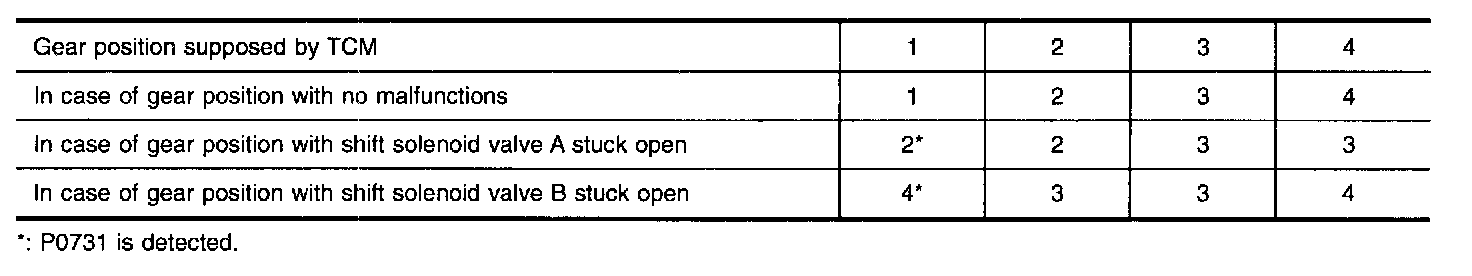 This malfunction will be caused when either shift solenoid valve A is stuck open or shift solenoid valve B is stuck open.