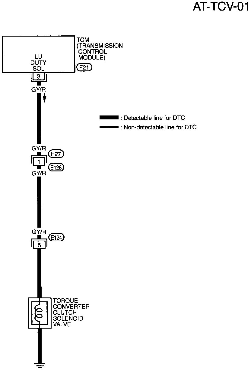 The torque converter clutch solenoid valve is activated, with the gear in "D4", by the TCM in response to signals sent from the vehicle speed and throttle position sensors. Lock-up piston operation will then be controlled.