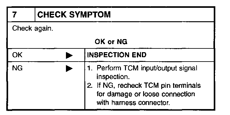 SYMPTOM: A/T does not shift from D1 to D2 at the specified speed. A/T does not shift from D4 to D2 when depressing