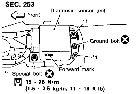 - After replacement of diagnosis sensor unit, perform self- diagnosis for SRS. Refer to "DIAGNOSTIC PROCEDURE 1" for details.