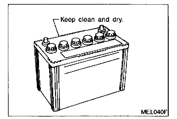 - The battery surface (particularly its top) should always be kept clean and dry.