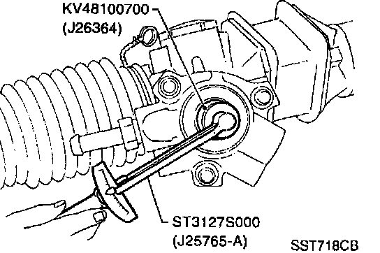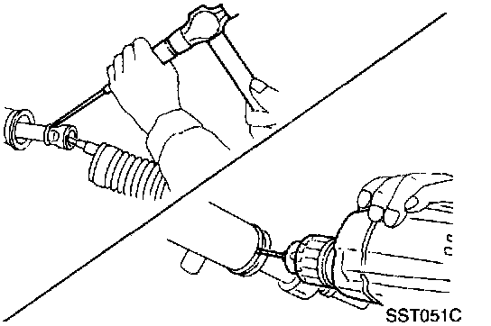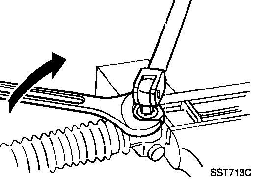 - If rack sliding force is not within specification, readjust by repeating adjustment procedure from the beginning.