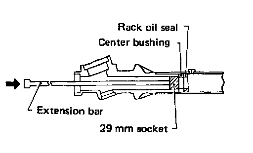 11. Remove center bushing and rack oil seal using tape wrapped socket and extension bar.