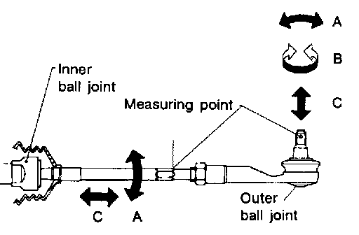 Tie-rod outer and inner ball joints axial end play "C":