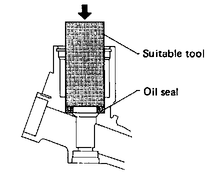 8. Coat seal lip of new pinion oil seal with multi-purpose grease. Install it into pinion housing of gear with a suitable tool. Make sure lip of oil seal faces up when installed.