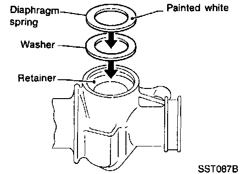 - Make sure convex end (painted white) of diaphragm spring faces outward when installing.