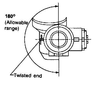 - Locate twisted end of boot clamp in the range shown. (This will prevent interference with other parts.)