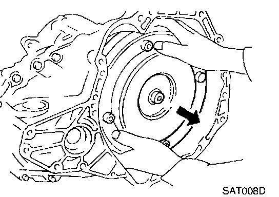 c. Check inner race rotates clockwise only. If not, replace torque converter assembly.