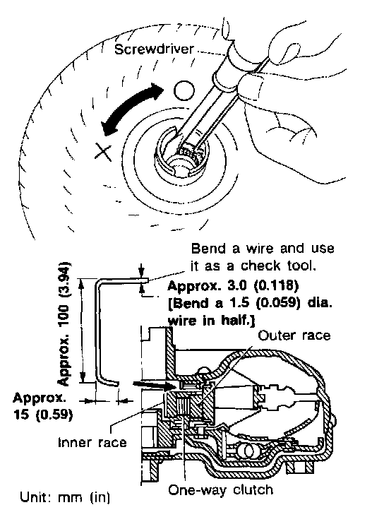 a. Insert check tool into the groove of bearing support built into one-way clutch outer race.