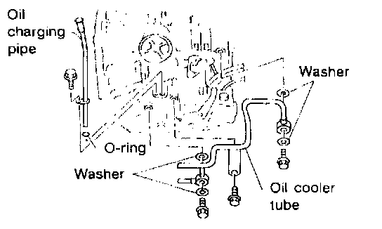 4. Remove oil charging pipe and oil cooler tube.