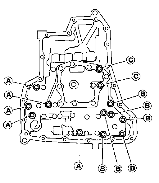 a. Remove control valve assembly mounting bolts A, B and C.