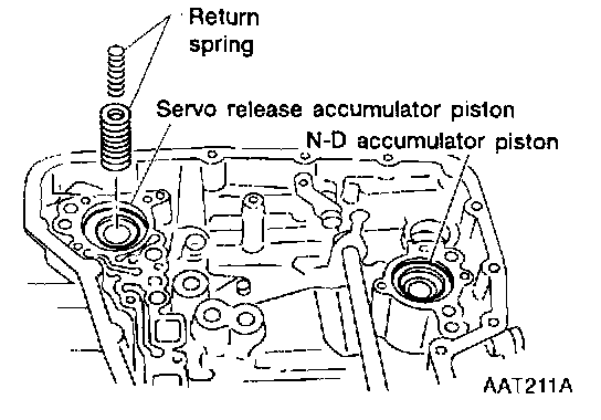 11. Remove return spring from servo release accumulator piston.