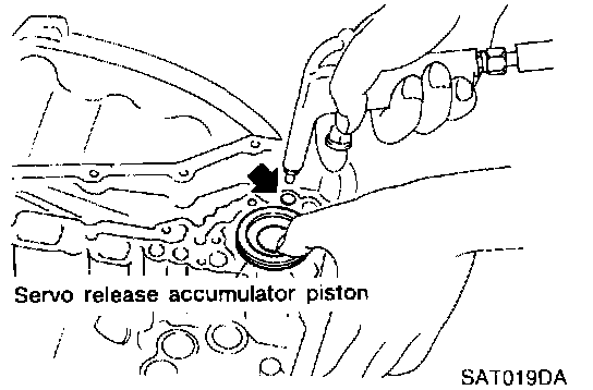 12. Remove servo release accumulator piston with compressed air.