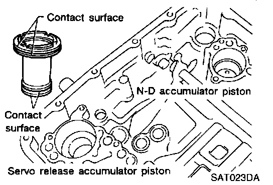 16. Check accumulator pistons and contact surface of transmission case for damage.