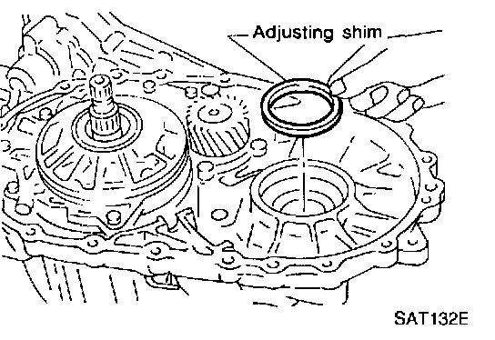 22. Remove differential side bearing adjusting shim from transmission case.