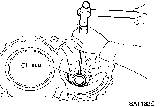 25. Remove side oil seal from transmission case using a screwdriver.