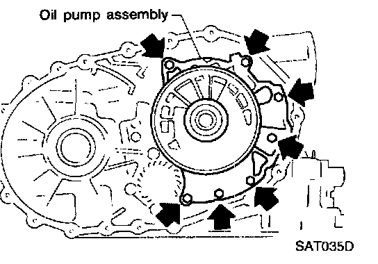 b. Remove oil pump assembly from transmission case.