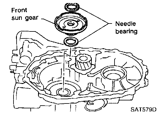 32. Remove front sun gear and needle bearings from transmission case.