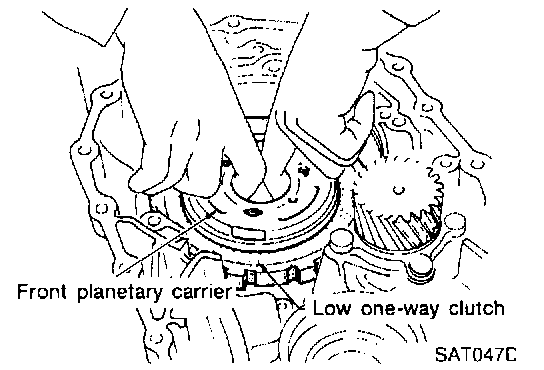 f. Check front planetary carrier, low one-way clutch and needle bearing for damage or wear.