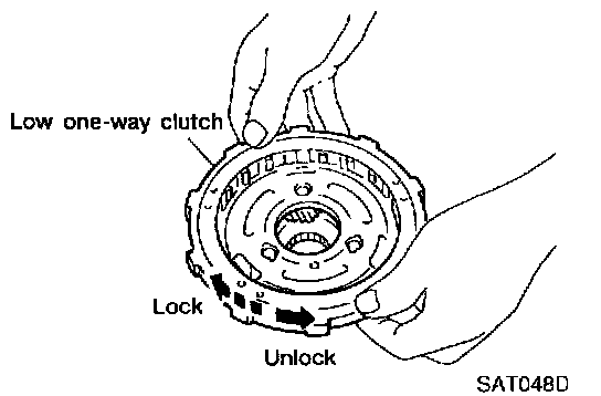 c. Check that low one-way clutch rotates in the direction of the arrow and locks in the opposite direction.