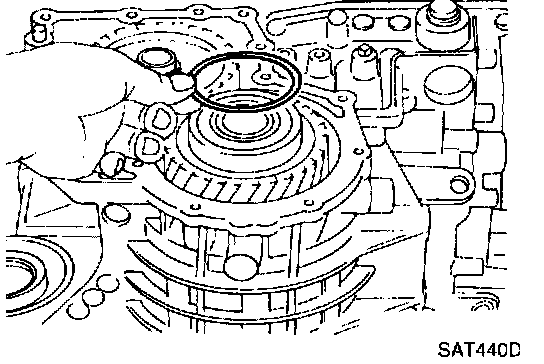 36. Remove rear internal gear from transmission case.