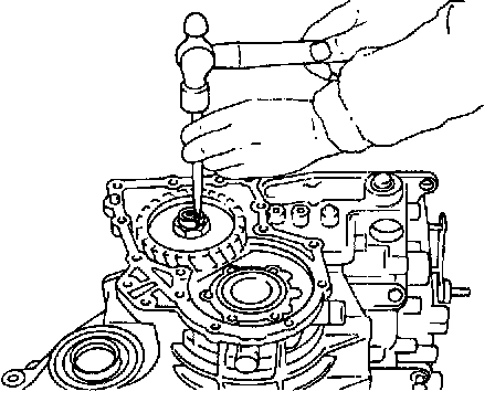 ^ If output shaft assembly came off with side cover, tap cover with a soft hammer to separate.