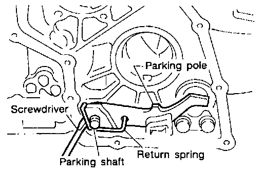 42. Remove return spring from parking shaft using a screwdriver.