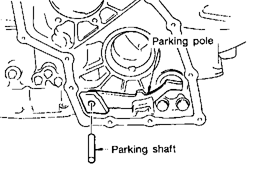 43. Draw out parking shaft and remove parking pole from transmission case.